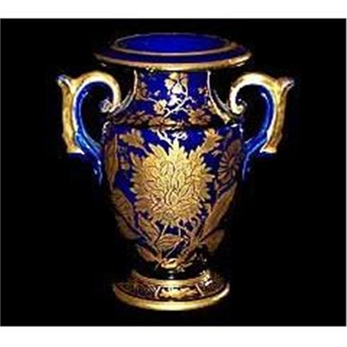 Antique Georgian Masons Vase, c. 1810, 6.25 inches tall. Beautiful Mazarine Blue and Gold.