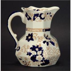 Masons octagonal jug with snake handle, hand coloured and transfer printed with Mandarin pattern, marks to base, 18cm high