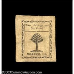<TABLE cellSpacing=0 cellPadding=0 width="100%" bgColor=#000000 border=0><TBODY> <TR><TD width="100%"><TABLE cellSpacing=1 cellPadding=3 width="100%" border=0><TBODY><TR><TD width="100%" bgColor=#79735c><FONT face=arial color=#ffffff size=3><B>Description</B> </FONT></TD></TR><TR><TD width="100%" bgColor=#ffffff><FONT face=arial size=2><B>Massachusetts 1779 2s6d Choice Very Fine.</B></I> A lovely Rising Sun example, very well printed on both sides, with a strong signature and excellent margins. The face of this note was printed by Paul Revere from plates that he engraved. An attractive, important and evocative issue. (700-up ) </FONT></TD></TR></TBODY></TABLE></TD></TR></TBODY></TABLE><BR><TABLE cellSpacing=0 cellPadding=0 width="100%" bgColor=#000000 border=0><TBODY><TR> Important notice: Heritage usually auctions material at the rate of 200-250 lots per hour. On some occasions eBay Live bid software or the Internet may not be able to keep up with the pace of the auction. We recommend placing a realistic absentee bid now as insurance to avoid disappointment. Occasionally the auctioneer may eliminate or reject an eBay Live bid, and the auctioneer may also reopen a lot after the close of the eBay live bidding (usually because we missed an audience bid), and may reject your bid even if it shows you as the winning bidder. By bidding via eBay Live, you agree that Heritage may award the lot to another bidder at its sole discretion under the circumstances described above or any other reasonable circumstances. Also please note that all Heritage lots purchased through eBay Live carry a 20% Buyer's Premium. Please make sure you read the Terms and Conditions before you bid.</TR></TBODY></TABLE>