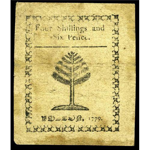 Massachusetts 1779 4s/6d Very Fine. A beautiful problem Massachusetts 1779 4s/6d Very Fine.