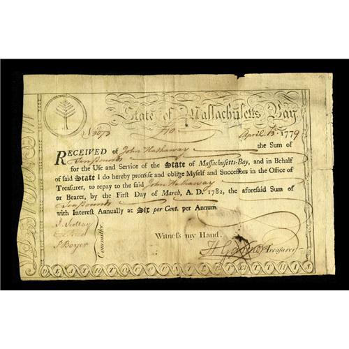 Massachusetts Apr. 13, 1779 $15 Fine. This MA-12 has a