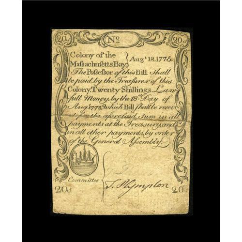 Massachusetts August 18, 1775 20s Very Fine-Extremely F