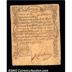 Massachusetts August 18, 1775 2s Choice Very Fine. A good-looking Sword in Hand note, and a very scarce low denomination. This issue was both engraved and printed by Paul Revere. The note is problem-free save for minor restorations along its horizontal center fold. It's very well margined, with every word of the text clear. CAA has sold only six other examples of this issue, and the only other 2s was graded Good - and that was back in 1991. With the current demand for quality Colonial Currency, we would not be surprised to see this note approach a five-figure realization. Important notice: We expect to be auctioning lots at the rate of 200-250 per hour. Sometimes eBay Premier live bid software cannot keep up with that pace, so we strongly recommend that you place a realistic proxy bid now as insurance to avoid disappointment. Also please note that all Heritage/CAA lots purchased through eBay Premier carry a 20% Buyer's Premium. Please make sure you read the Terms and Conditions.