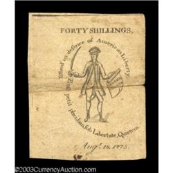 Massachusetts August 18, 1775 40s Very Fine-Extremely Fine.