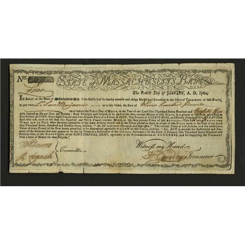 Massachusetts Commodity Bond January 1, 1780 Fine, repa Massachusetts Commodity Bond January 1, 1780
