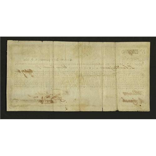 <B>Massachusetts Commodity Bond January 1, 1780 Fine.</B></I> Here is another MA-21 for your consideration. This note has the folds of a VF, but exhibits almost ten edge tears, with one tear approaching a half inch in length. This example was made payable to Sam'l Benjamin.