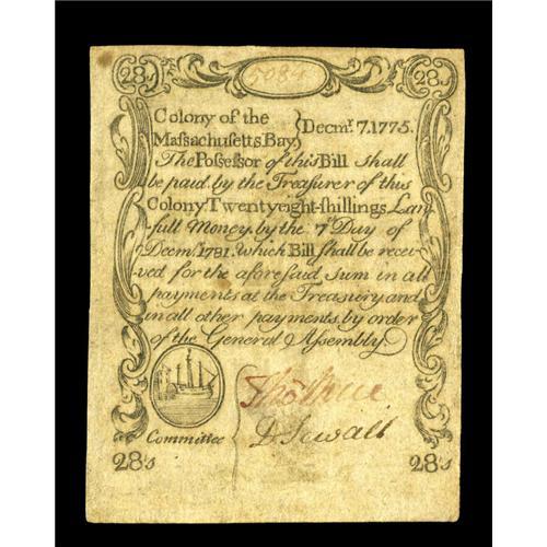 Massachusetts December 7, 1775 28s Choice Very Fine. An Massachusetts December 7, 1775 28s Choice Ve