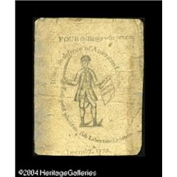 Massachusetts December 7, 1775 4s/6d Fine. There are so <B>Massachusetts December 7, 1775 4s/6d Fine.</B></I> There are some minor restoration and edge splits but the signatures and serial numbers have faded. The all important patriotic vignette on the back is incredibly clear for a note of this degree of circulation. It's genuine beyond question as no counterfeits of this denomination were produced. <BR><BR><B>Important notice:</B> Heritage usually auctions material at the rate of 200-250 lots per hour. On some occasions eBay Live bid software or the Internet may not be able to keep up with the pace of the auction. We recommend placing a realistic absentee bid now as insurance to avoid disappointment. Occasionally the auctioneer may eliminate or reject an eBay Live bid, and the auctioneer may also reopen a lot after the close of the eBay live bidding (usually because we missed an audience bid), and may reject your bid even if it shows you as the winning bidder. By bidding via eBay Live, you agree that Heritage may award the lot to another bidder at its sole discretion under the circumstances described above or any other reasonable circumstances. Since eBay bids are not shown to us until we open the lot on the floor, we treat those bids just like floor bids. In most cases the floor responds before the eBay bid is presented to us, due to Internet lag time, so for consistency we have made it a policy that floor bids are always considered first over tie eBay live bids. Also please note that all Heritage lots purchased through eBay Live carry a 20% Buyer's Premium. Please make sure you read the Terms and Conditions before you bid. This lot is being auctioned in conjunction with a live floor auction by Heritage Galleries & Auctioneers. All final auction and invoice information will be supplied by Heritage Galleries & Auctioneers, and all other information should be considered preliminary. Lot:15140