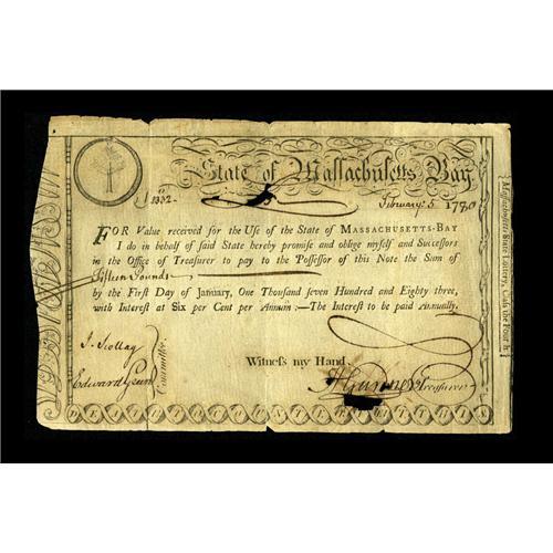 Massachusetts Feb. 5, 1780 $15 Very Fine. This is an A