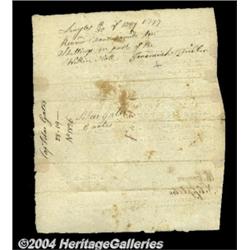 Massachusetts January 28, 1777 Bounty Note. Signed by Cooper and Appleton as committee and Gardner as Treasurer. This document grades Very Fine or better and measures 6 1/2" by nearly 8". Listed as an R-4 in Anderson. <BR><BR><B>Important notice:</B> Heritage usually auctions material at the rate of 200-250 lots per hour. On some occasions eBay Live bid software or the Internet may not be able to keep up with the pace of the auction. We recommend placing a realistic absentee bid now as insurance to avoid disappointment. Occasionally the auctioneer may eliminate or reject an eBay Live bid, and the auctioneer may also reopen a lot after the close of the eBay live bidding (usually because we missed an audience bid), and may reject your bid even if it shows you as the winning bidder. By bidding via eBay Live, you agree that Heritage may award the lot to another bidder at its sole discretion under the circumstances described above or any other reasonable circumstances. Since eBay bids are not shown to us until we open the lot on the floor, we treat those bids just like floor bids. In most cases the floor responds before the eBay bid is presented to us, due to Internet lag time, so for consistency we have made it a policy that floor bids are always considered first over tie eBay live bids. Also please note that all Heritage lots purchased through eBay Live carry a 20% Buyer's Premium. Please make sure you read the Terms and Conditions before you bid. <BR><BR><B>IMPORTANT ANNOUNCEMENT ABOUT RESERVES:</B> Heritage now divulges all reserves on its web site 7 days before every auction. If you want to know whether the reserve on this lot has been met, and if not, what the reserve amount is, please visit this lot page on the HeritageCoin.com web site, or email: bid@HeritageGalleries.com