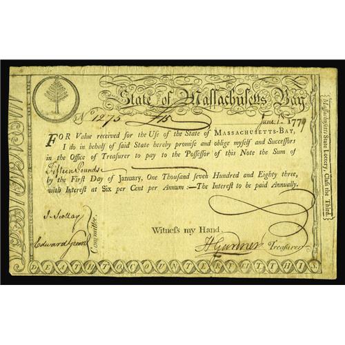 Massachusetts June 1, 1779 $15 Extremely Fine. Massachusetts June 1, 1779 [$15 Extremely Fine.