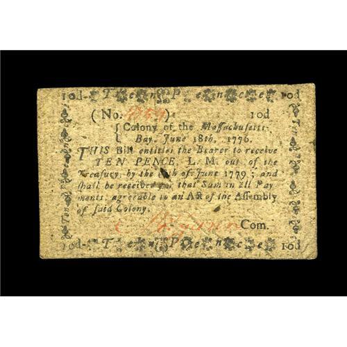 Massachusetts June 18, 1776 10d Very Fine-Extremely Fin Massachusetts June 18, 1776 10d Very Fine-Ex
