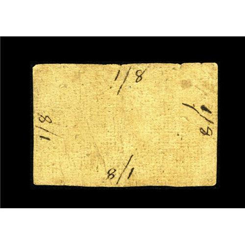 <B>Massachusetts June 18, 1776 1s/8d Fine-Very Fine.</B></I> Some edge roughness is seen on this note which is only the fifth we have sold in all of our prior auctions. Someone has penned in period ink 1/8 on all four sides of the back.<BR><BR><b>Shipping:</b> Coin/Currency (<a target="_blank" href="http://www.heritageauctions.com/common/shipping.php">view shipping information</a>)