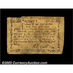 Massachusetts June 18, 1776 3s6d Fine-Very Fine. A nice example of the seldom-seen smaller size low-denomination notes from this very scarce issue. The top margin is irregular, but the signature and serial number are clear. A solid note, free of restorations, with all of its text quite legible. Important notice: We expect to be auctioning lots at the rate of 200-250 per hour. Sometimes eBay Premier live bid software cannot keep up with that pace, so we strongly recommend that you place a realistic proxy bid now as insurance to avoid disappointment. Also please note that all Heritage/CAA lots purchased through eBay Premier carry a 20% Buyer's Premium. Please make sure you read the Terms and Conditions.