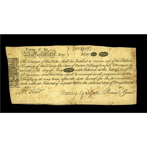 Massachusetts May 25, 1775 12s Very Fine-Extremely Fine Massachusetts May 25, 1775 12s Very Fine-Ext