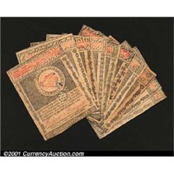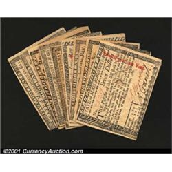 Massachusetts May 5, 1780 Guaranteed Grouping.<p>A complete denomination set of this Guaranteed Issue, $1, $2, $3, $4, $5, $7, $8 and $20, plus an extra $5 and $7 for a total of ten notes. All are canceled, and the average grade is About New. 10 Important notice: We expect to be auctioning lots at the rate of 200-250 per hour. Sometimes eBay Premier live bid software cannot keep up with that pace, so we strongly recommend that you place a realistic proxy bid now as insurance to avoid disappointment. Also please note that all Heritage/CAA lots purchased through eBay Premier carry a 20% Buyer's Premium.