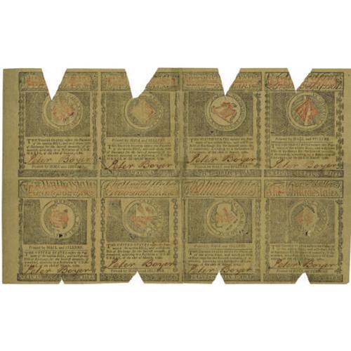 Massachusetts May 5, 1780 Uncut Sheet of Eight