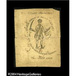 Massachusetts November 17, 1776 48s Contemporary Counte <B>Massachusetts November 17, 1776 48s Contemporary Counterfeit Very Fine.</B></I> One of the rarest issues of Massachusetts notes. Genuine examples are virtually never seen and even counterfeits are rarely encountered. This note is pen-cancelled with an "X" across its face signifying its fraudulent status and the word "Counterfeit" is written vertically on the back next to the Continental soldier. Quite a good counterfeit that clearly circulated for a time along with the genuine examples of this prohibitively rare issue. <BR><BR><B>Important notice:</B> Heritage usually auctions material at the rate of 200-250 lots per hour. On some occasions eBay Live bid software or the Internet may not be able to keep up with the pace of the auction. We recommend placing a realistic absentee bid now as insurance to avoid disappointment. Occasionally the auctioneer may eliminate or reject an eBay Live bid, and the auctioneer may also reopen a lot after the close of the eBay live bidding (usually because we missed an audience bid), and may reject your bid even if it shows you as the winning bidder. By bidding via eBay Live, you agree that Heritage may award the lot to another bidder at its sole discretion under the circumstances described above or any other reasonable circumstances. Since eBay bids are not shown to us until we open the lot on the floor, we treat those bids just like floor bids. In most cases the floor responds before the eBay bid is presented to us, due to Internet lag time, so for consistency we have made it a policy that floor bids are always considered first over tie eBay live bids. Also please note that all Heritage lots purchased through eBay Live carry a 20% Buyer's Premium. Please make sure you read the Terms and Conditions before you bid. This lot is being auctioned in conjunction with a live floor auction by Heritage Galleries & Auctioneers. All final auction and invoice information will be supplied by Heritage Galleries & Auctioneers, and all other information should be considered preliminary. Lot:15143