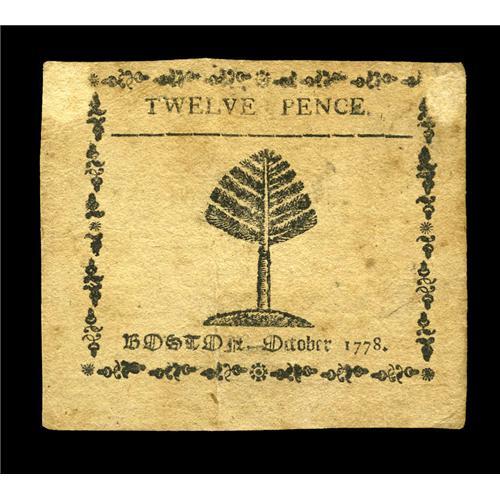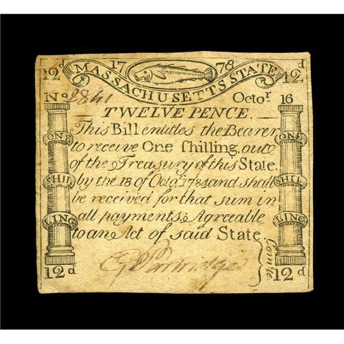 Massachusetts October 16, 1778 12d Extremely Fine. A be Massachusetts October 16, 1778 12d Extremely