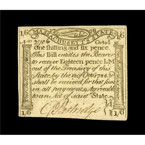 Massachusetts October 16, 1778 1s6d About New. There is Massachusetts October 16, 1778 1s6d About Ne