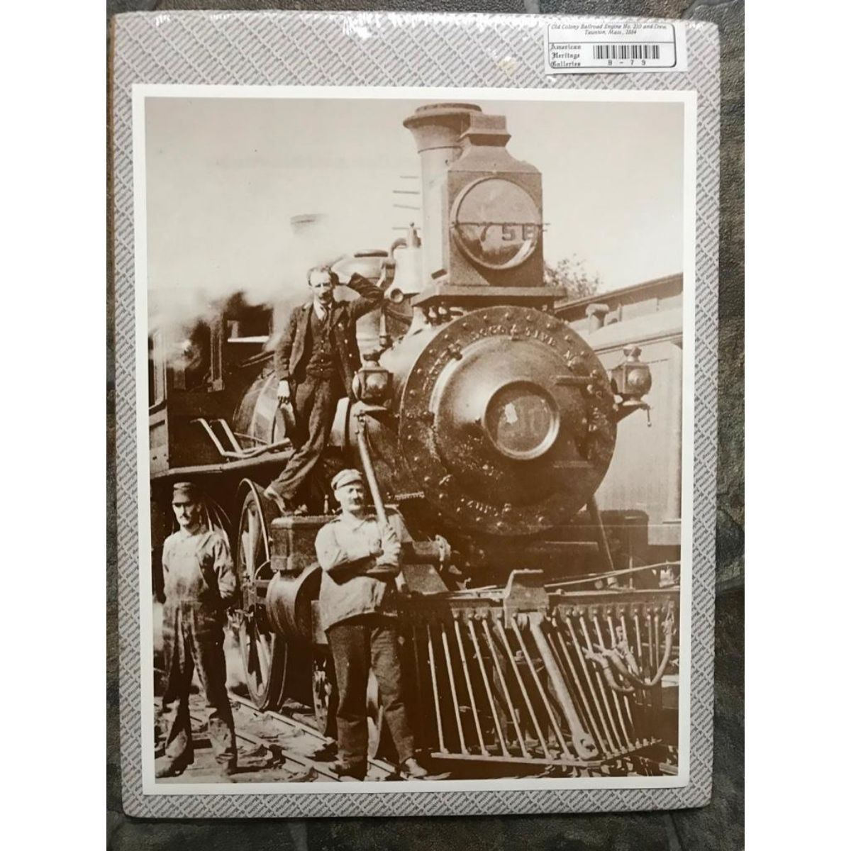 Old colony Railroad Engine No 210 with crew. Taunton, Massachusetts 1884 sepia-tone photo print. Created in the early 1990's for The American Heritage Galleries. 11" X 14" printed on heavy cardstock, with original packaging.Â