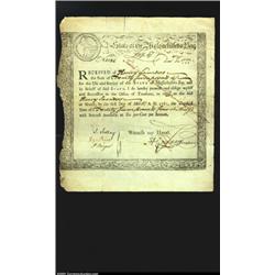 Massachusetts Treasury Certificate, 6% Interest due March 1, 1781 Extremely Fine.<p>Another MA 10, identical to the above but with a few short splits tape-repaired. Important notice: We expect to be auctioning lots at the rate of 200-250 per hour. Sometimes eBay Premier live bid software cannot keep up with that pace, so we strongly recommend that you place a realistic proxy bid now as insurance to avoid disappointment. Also please note that all Heritage/CAA lots purchased through eBay Premier carry a 20% Buyer's Premium.