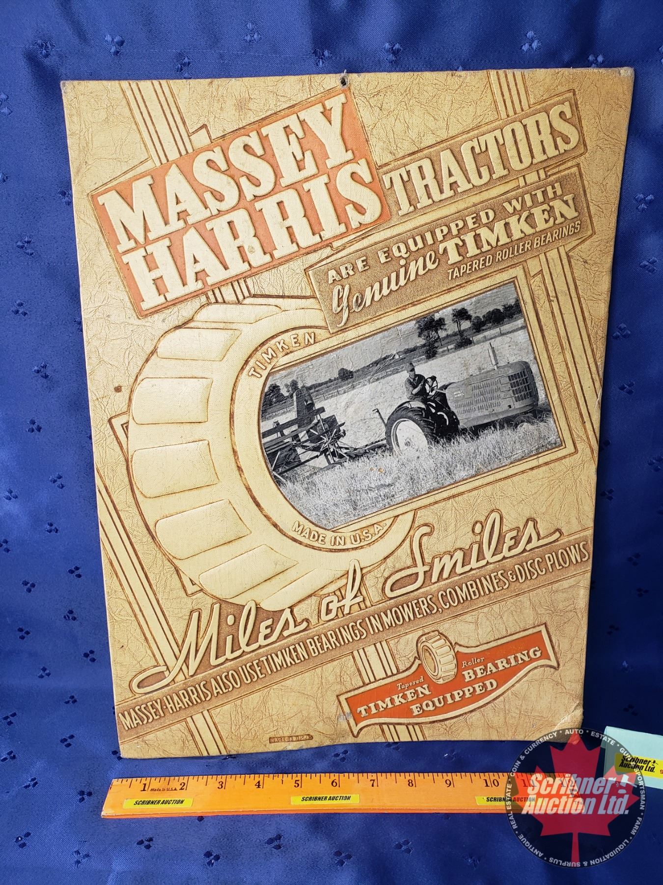 "Massey Harris Tractors" Pressed Cardboard Ad Sign "Miles of Smiles" Made in USA (17-1/4"H x 13"W)
