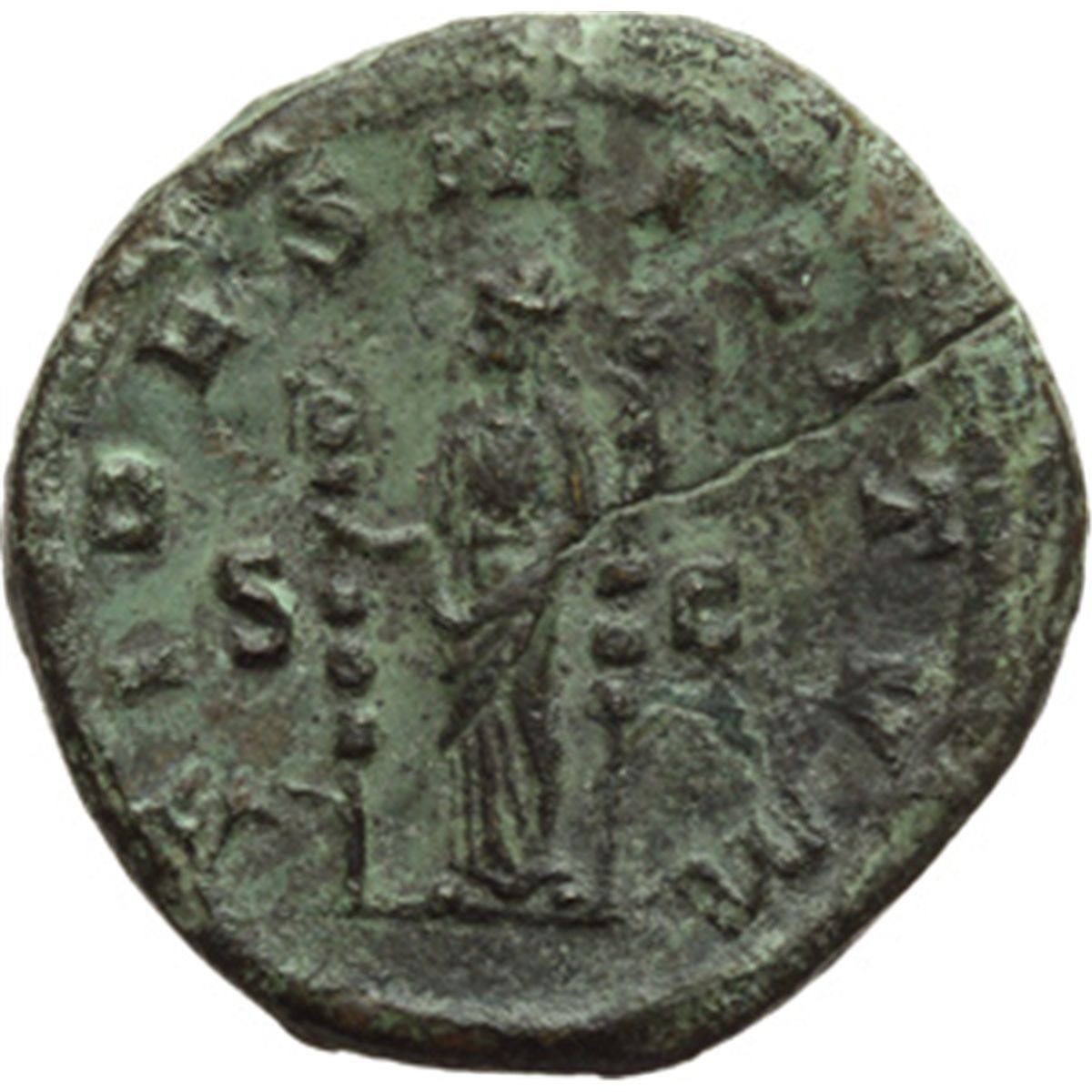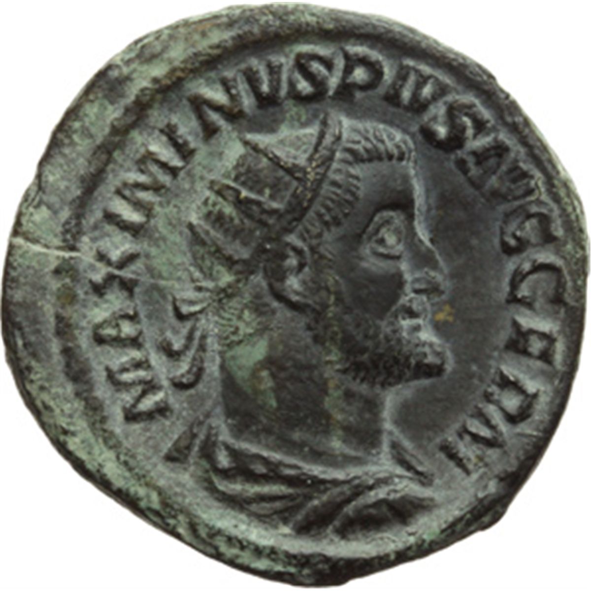 Impero Romano. Massimino I (235-238). Dupondio. D/ MAXIMINVS PIVS AVG GERM. Busto radiato, drappeggiato e corazzato a destra. R/ FIDES MILITVM SC. Fides, stante tre quarti a sinistra, tiene un'insegna. Accanto, a destra, una seconda insegna. RIC 79. AE. g. 11.23 mm. 26.00 Infrazione radiale in ore 9. BB+.