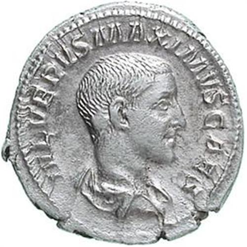 Roman Empire Coins. Massimo (235-238). Denarius. D/ IVL VERVS MAXIMVS CAES. Busto a testa nuda a destra. R/ PIETAS AVG. Lituus, coltello sacrificale, capis, simpulum ed aspergillum. RIC 1. gr. 2.57 R. AG. Bel BB/BB+.