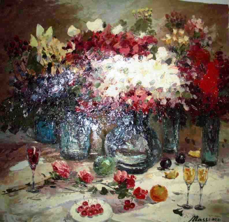 Massimo Original Oil On Canvas - Image Size Appx 31" X 31" - Signed - Professionally Stretched And Framed