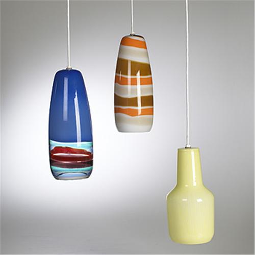 Massimo Vignelli pendants, set of three Venini Italy, c. 1954 glass 20"w x 18"d x 62"h