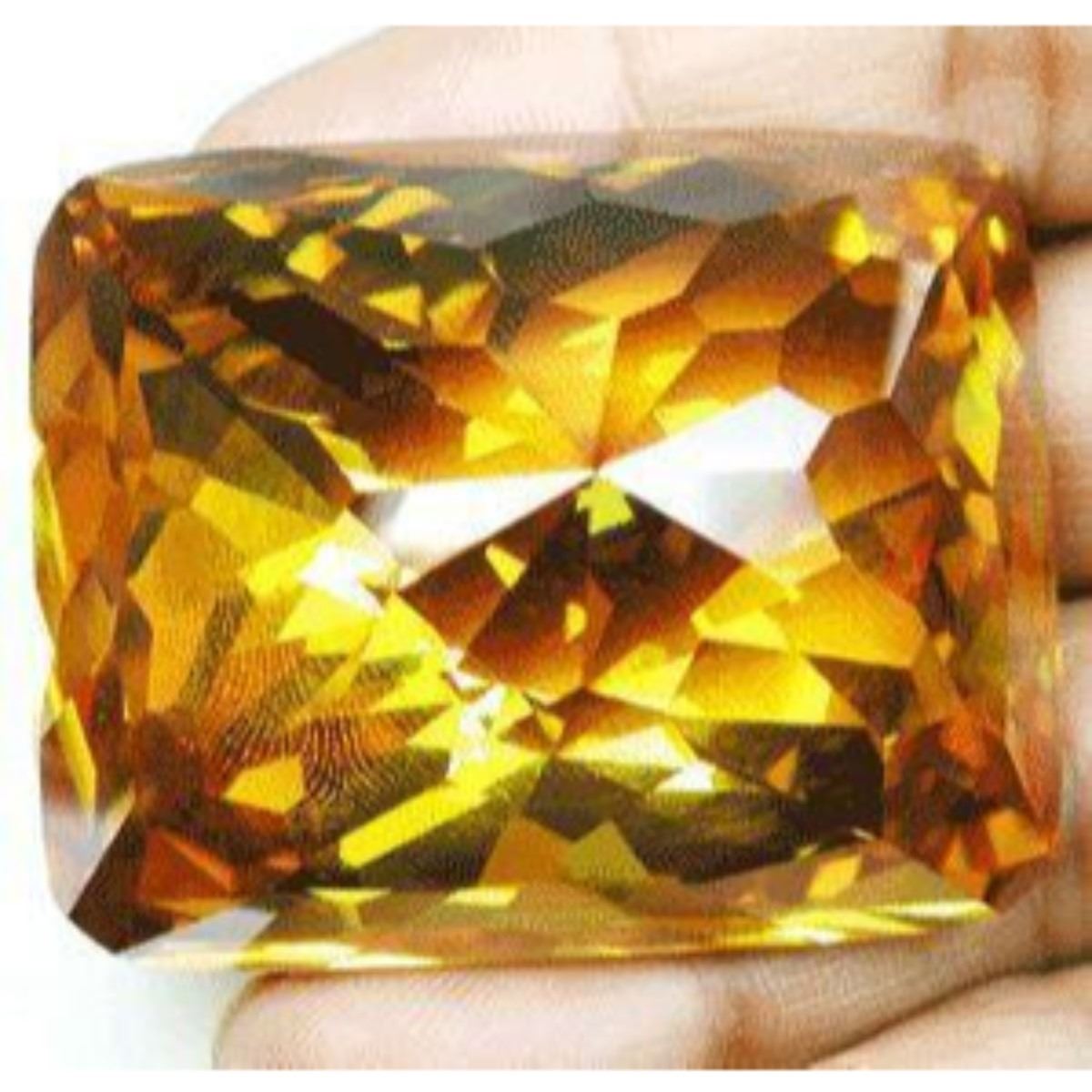 Massive 248.70 carat, heavy weight, multi faceted, cushion cut citrine gemstone for display. 27 X 33mm.