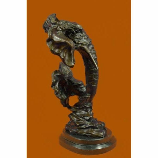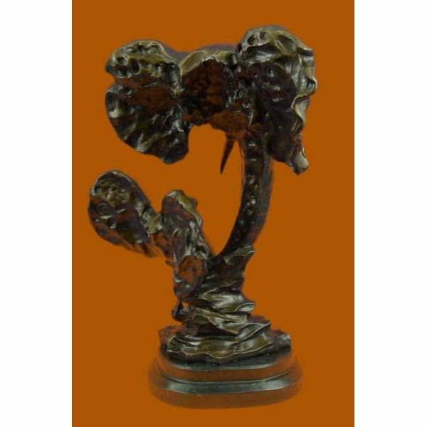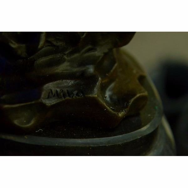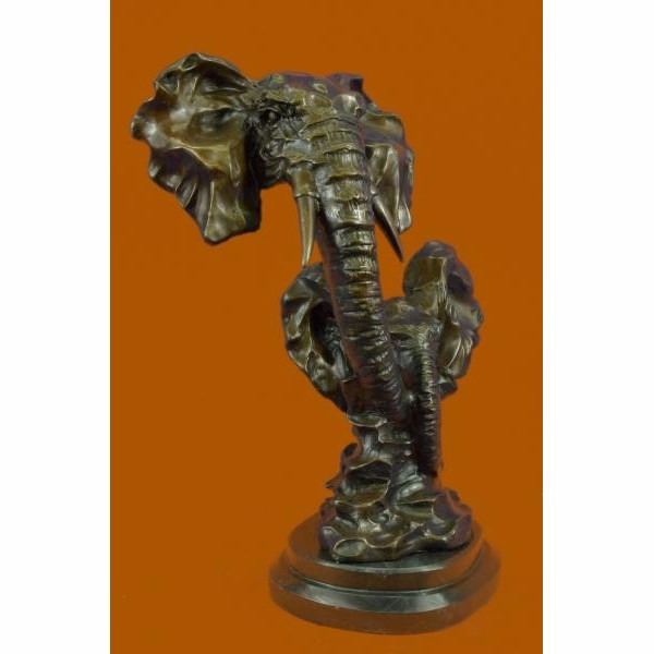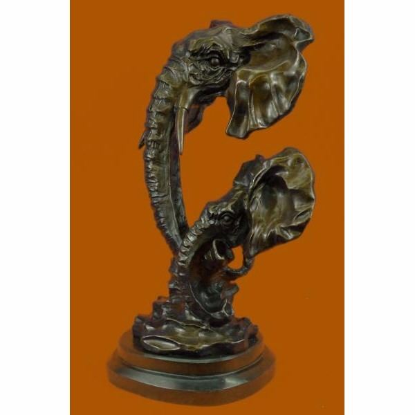 The Members Of An Elephant Clan Can Be Imagined On The Banks Of A Watering Hole In The Hot Plains Of Africa. Reaching The Final Destination After An Epic Migration They All Trumpet Their Trunks Into The Air In Reverie. For Years The Elephant Has Been Known As A Sacred Animal In The East. As The Largest Animal To Walk The Earth, The Elephant Is Known As A Symbol Of Strength And Power. In Buddhist Cultures, White Elephants Are Symbolic Of Patience And Wisdom. The Chinese See Elephants As A Symbol Of Energy, Strength, And Power. Ganesha Is A Hindu Deity With An Elephant's Head. The Handmade Bronze Sculpture Was Captured Using The Ancient Method Of Lost-Wax Casting And Stained With A Brown Patina Finish For Preservation And Is Signed by artist Milo. Condition: This sculpture is in perfect condition. Bronze Dimensions with Marble Base:Height 16" x Width 13" Marble Dimensions: Diameter 7" Height without base: 15" Weight : 27 LBS Inventory : 21DW18213612