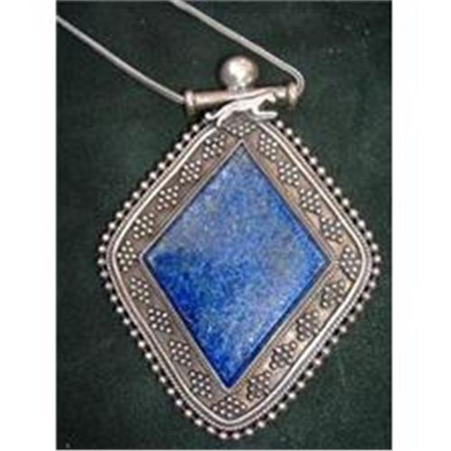 This is a huge Egyptian Lapis Lazuli stone cut into a diamond shaped and incased in highly detailed 925 Sterling Silver. At the very top of pendant is a sterling carving of a Greyhound Dog. The Pendant is supported by a generous 13" 925 Sterling Silver Chain