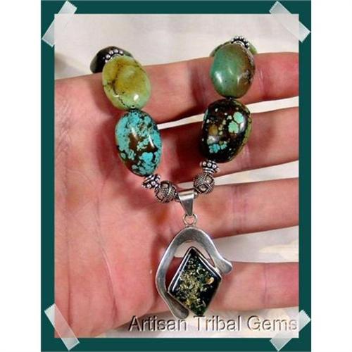 <tr><td>Title:Massive Spiderweb Turquoise Nugget Choker~135</td></tr>