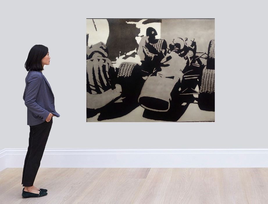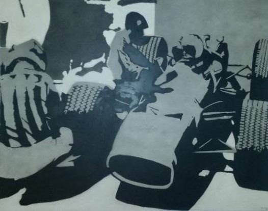 * Antique Tekno lacquers Painting / Luis Zevallos , Signed 1970 . **Title: " Preparandose para Ganar" ** This Work was the winner of the Tecnoquímica award in the 1970s, winning POP ART as the best painting.* Measures: 120 x 150 Centímeters. ** Unique Art Work . Sold only for Opportunity.** Shipping to Worldwide..**