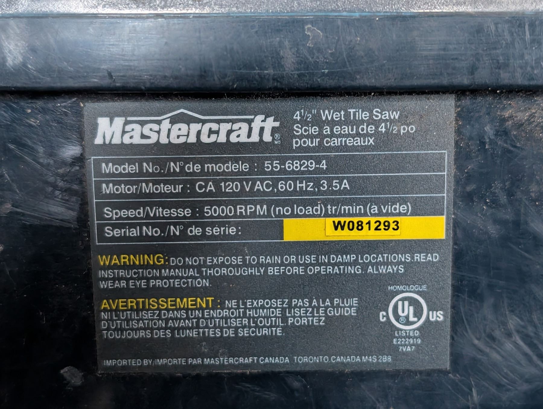 Master Craft 4 1/2" Wet Tile Saw(not tested)