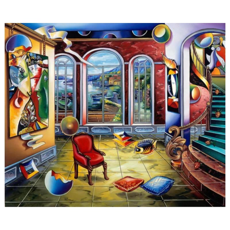 "Master in Time" is a limited edition Giclee on Canvas by Alexander Astahov. The piece is numbered, hand signed by the artist, and come with a letter of authenticity. Measures approximately 20" x 24".