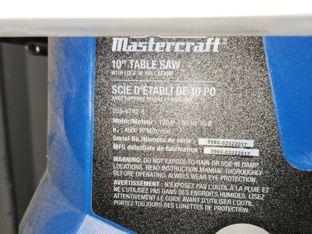 Mastercraft 10" Table Saw w/ Fold n' Roll Stand Model 56-6742-8