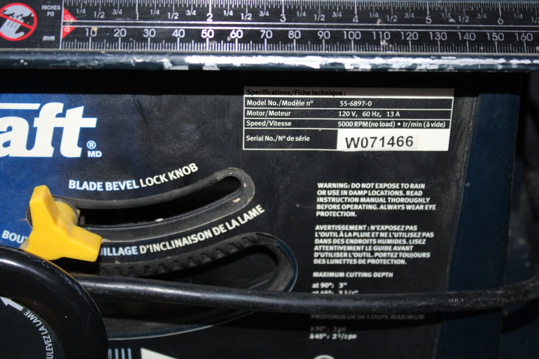 Mastercraft 10" table saw (34" T x 27" W)