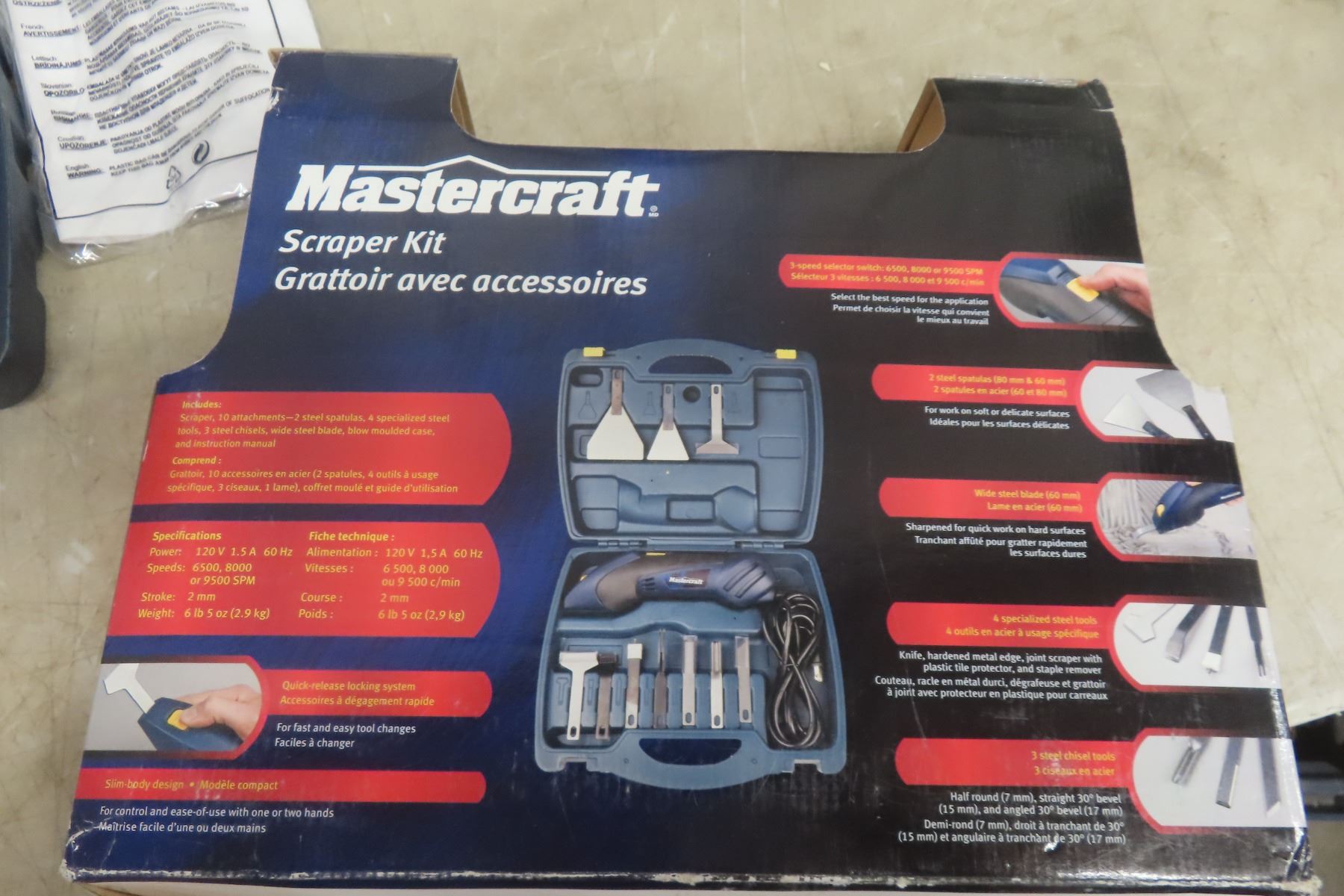 Mastercraft 12-Piece Electric Scraper Set, 1.5A, In Case, Never Used