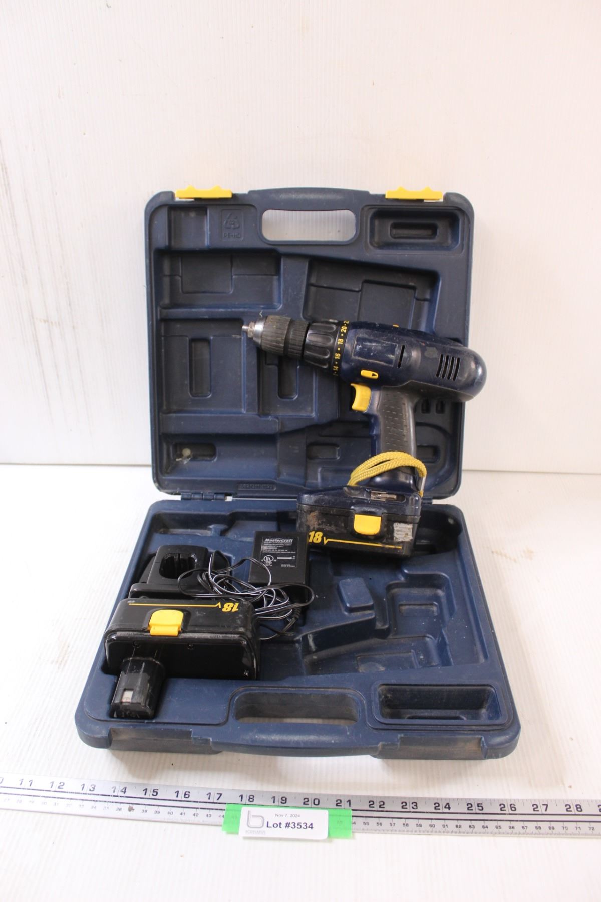 Mastercraft 18V Battery Powered Drill w/Charger in Case - May Need to Charge, as is