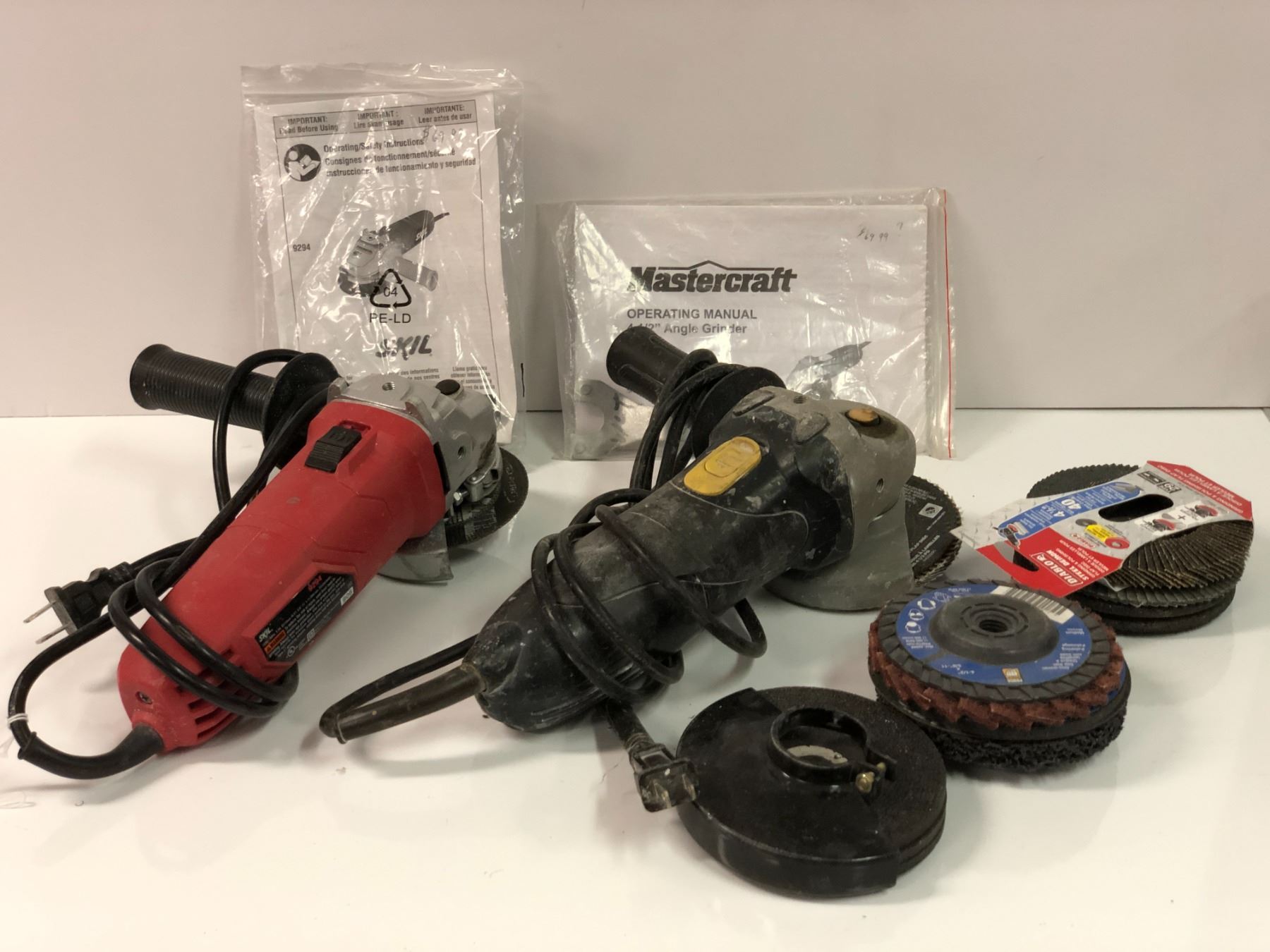 Mastercraft 4 1/2in angle grinder & Skil 4 1/2in angle grinder w/ extra grinding discs