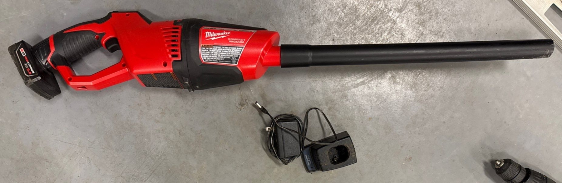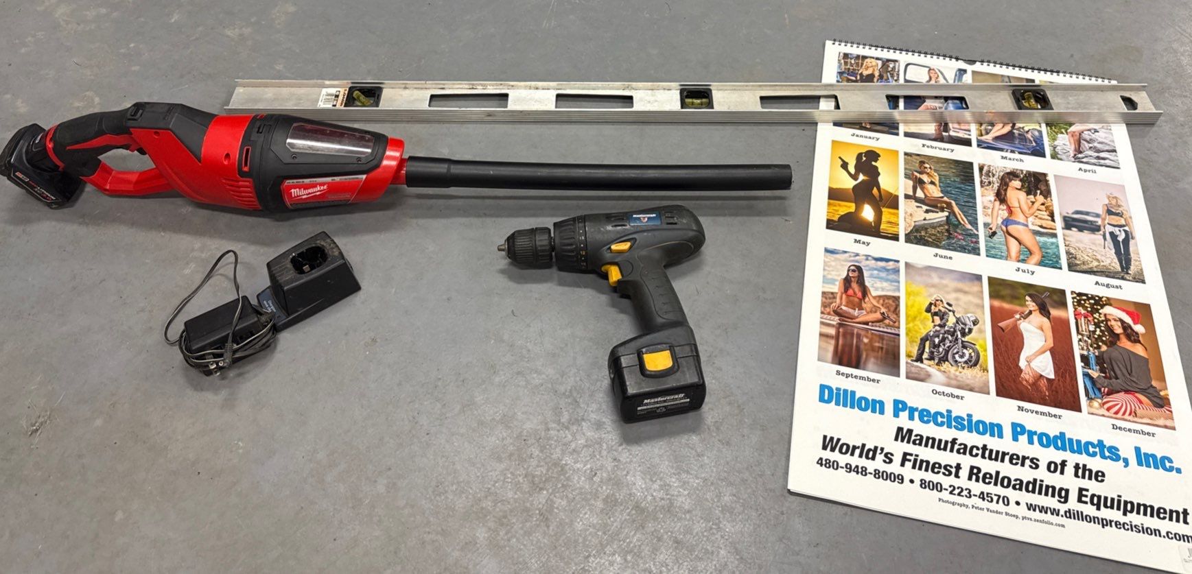 Mastercraft Drill, Milwaukee Compact Vacuum, Level & Calendar