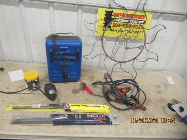 Mastercraft Elec Heater, Booster Cables, Wipers & Metal Yard Decor