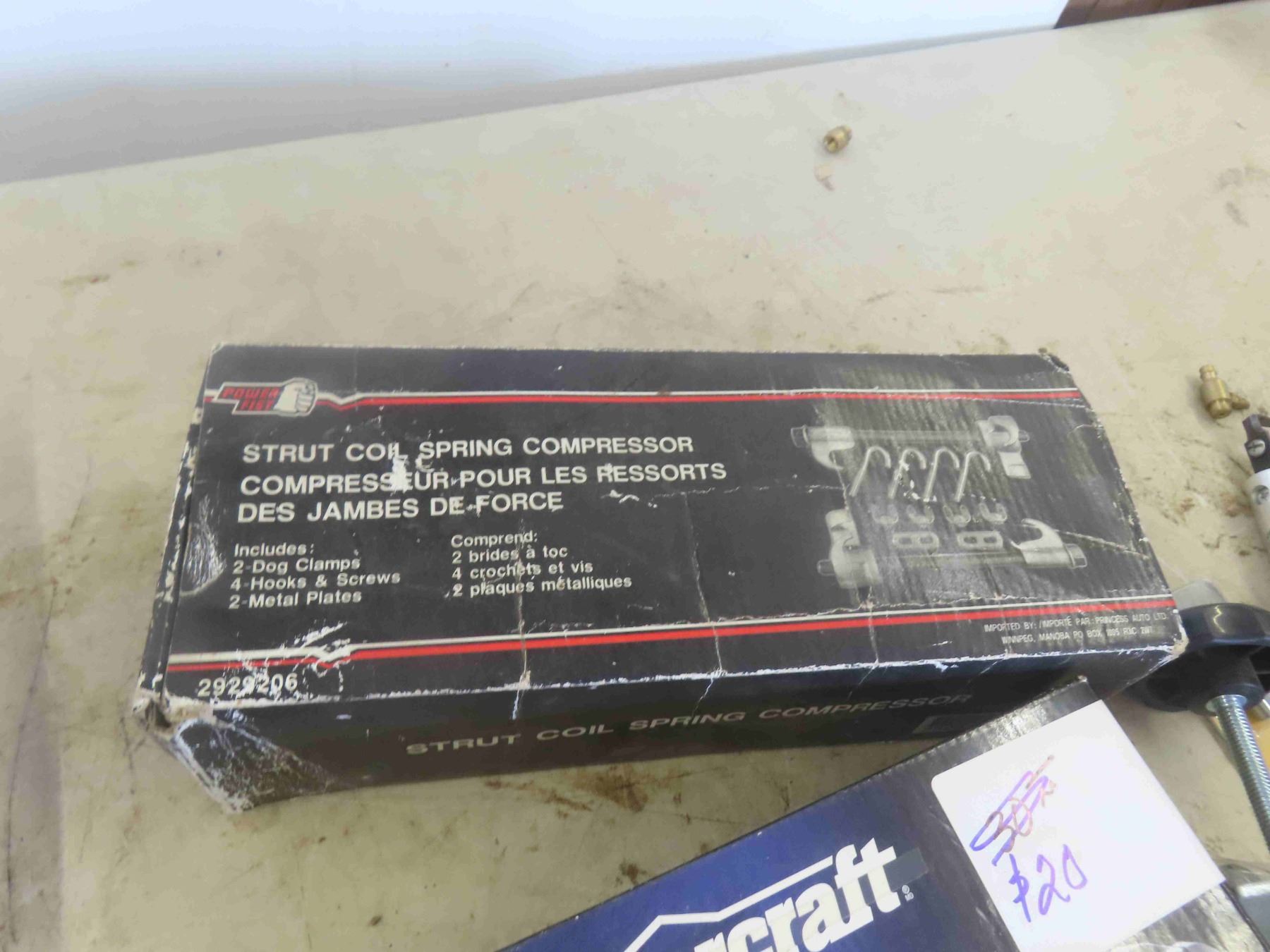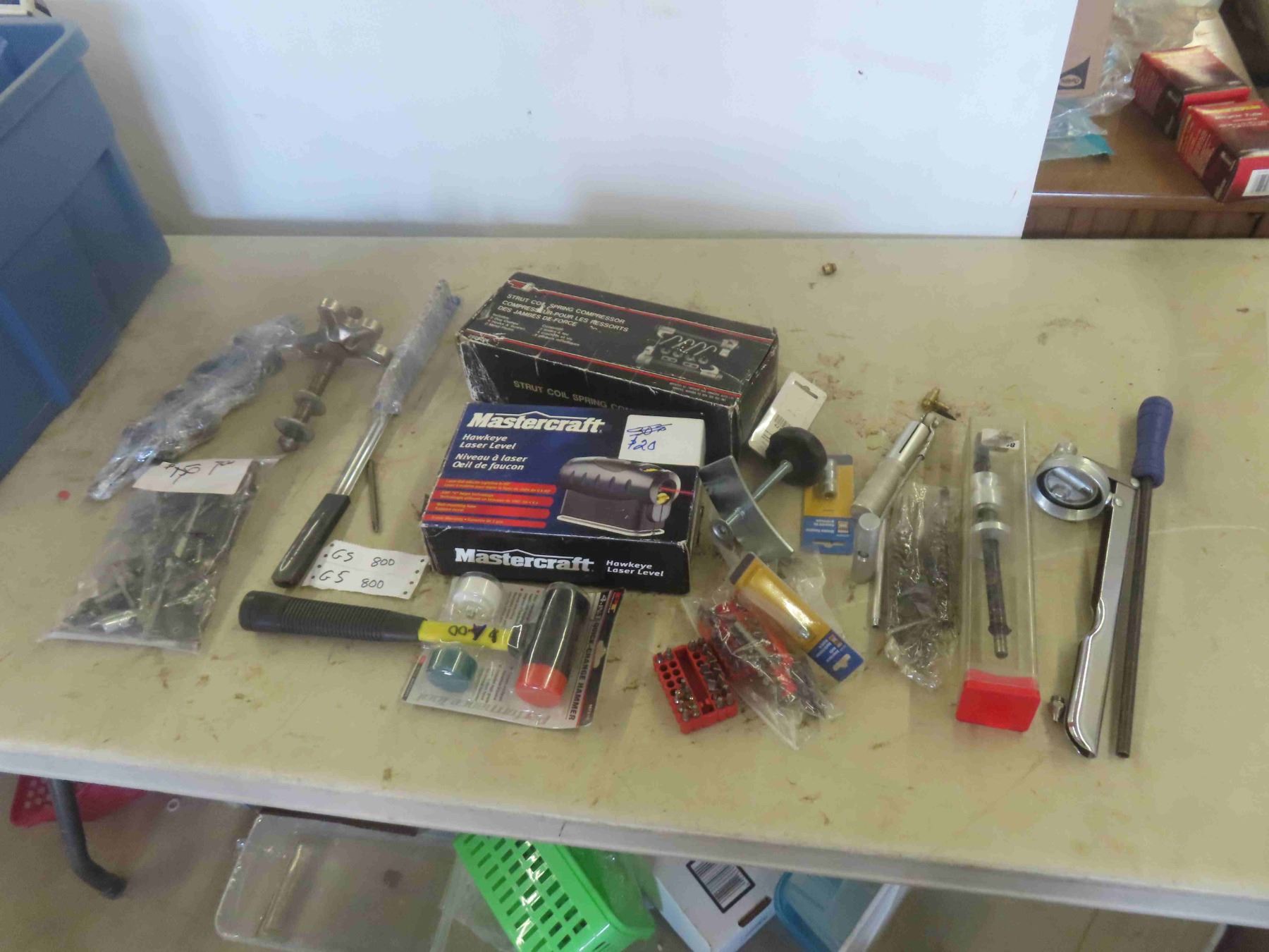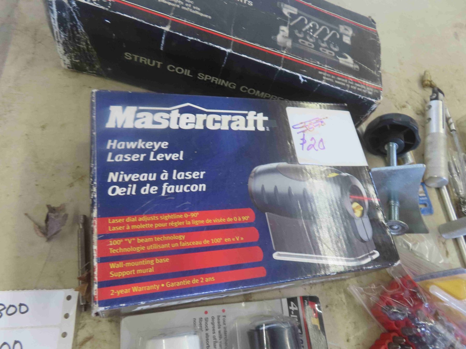 Mastercraft Hawkeye Laser Level, Strut Coil Spring Compressor, Tap and Die Set, Gear Puller & More