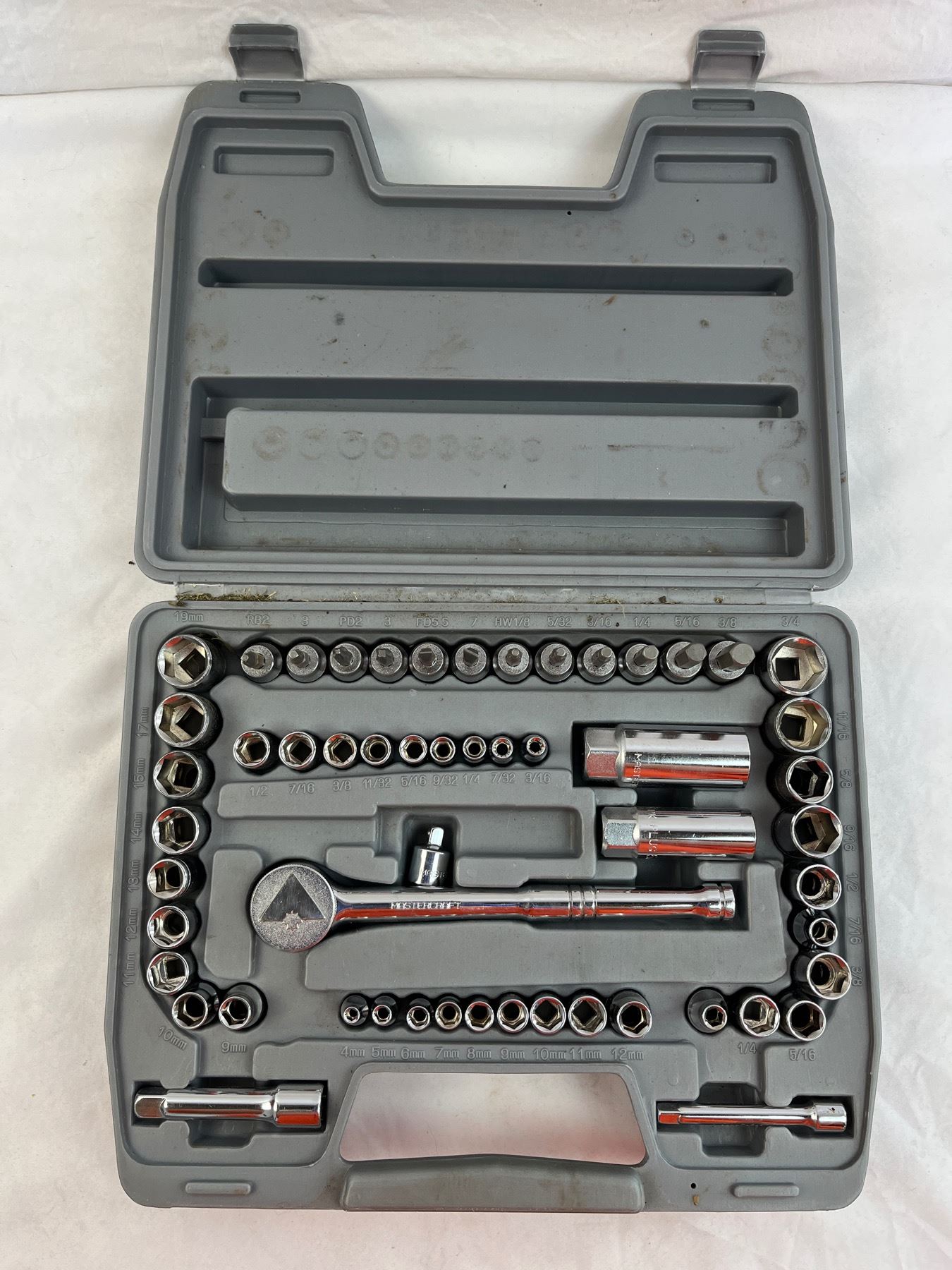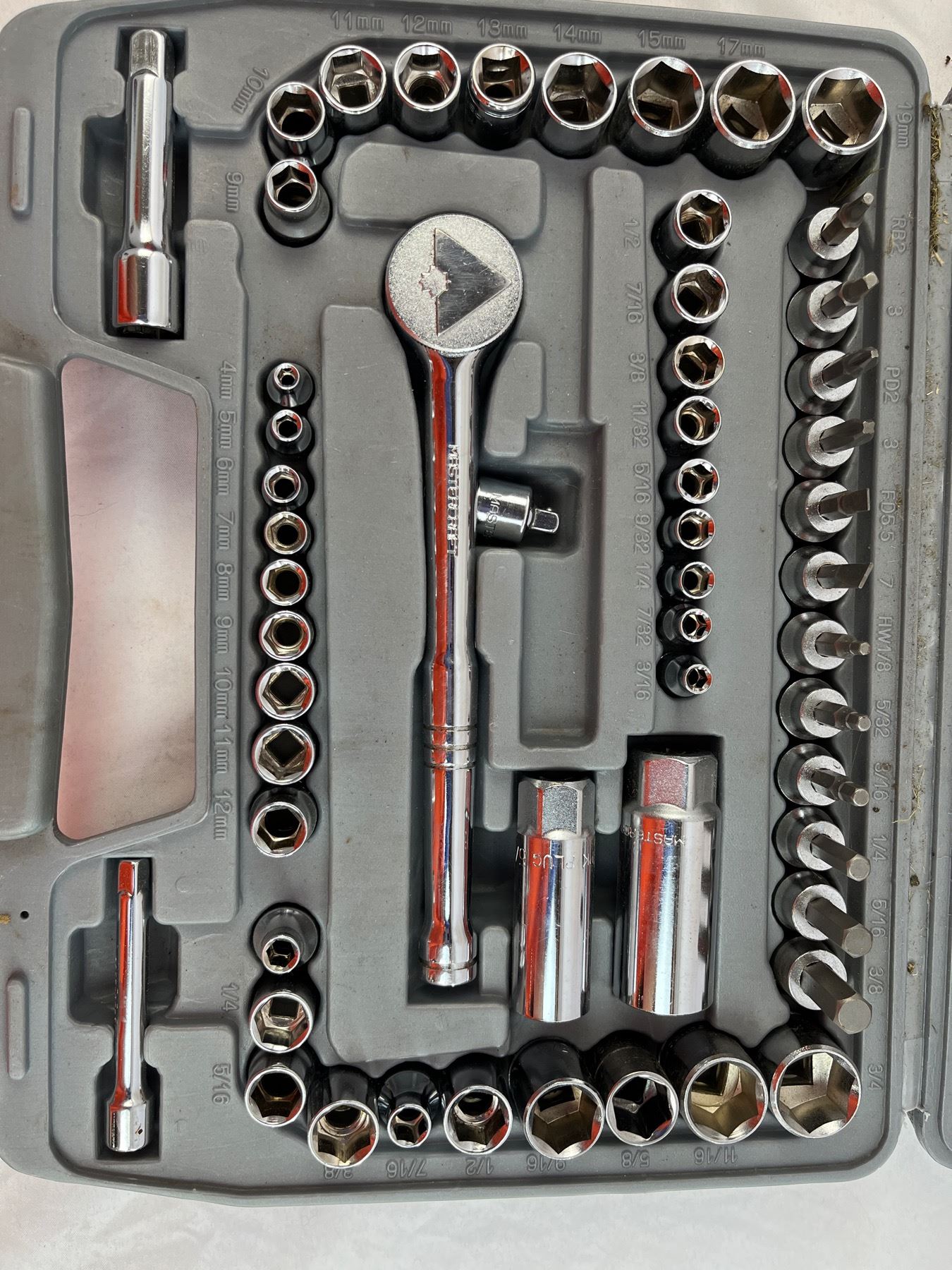 With metric and imperial sockets and screwdriver attachments in case