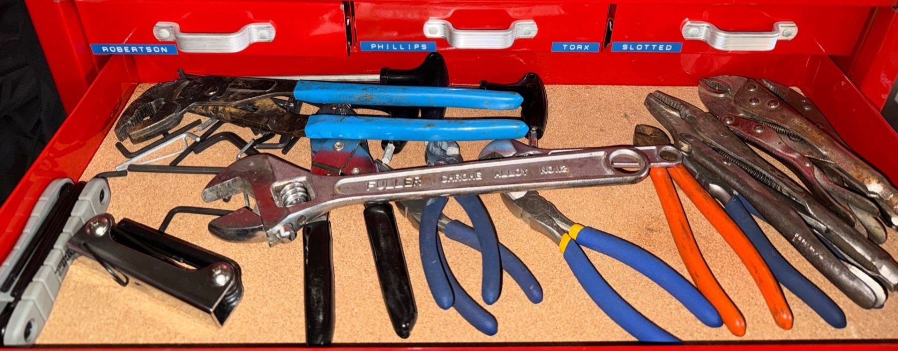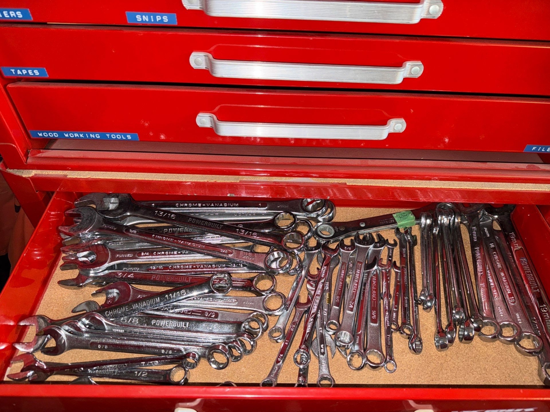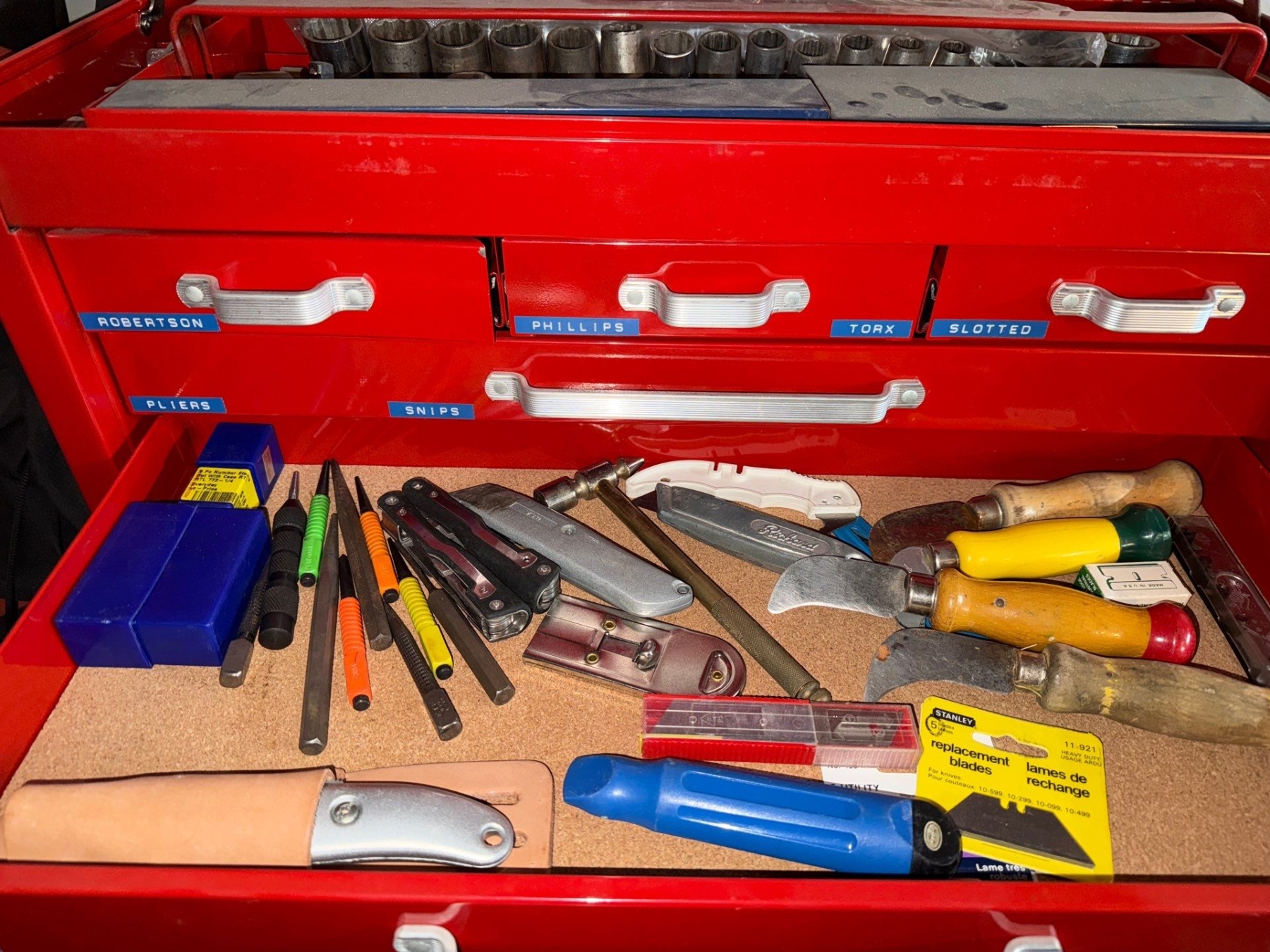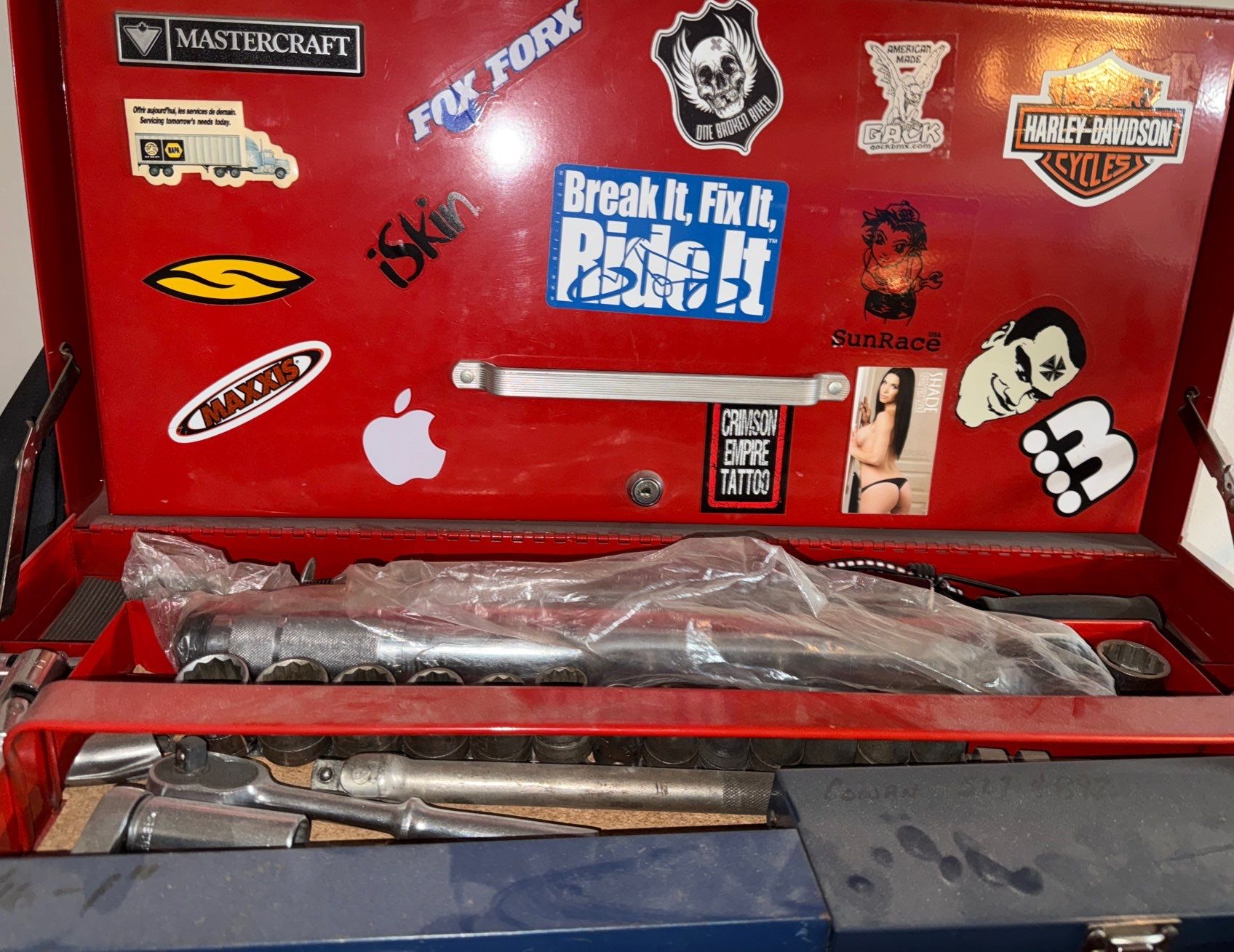 Mastercraft Rolling Tool Chest- Red Multiple Drawered Tool Box Full Of Various Tools & Garage Goodies