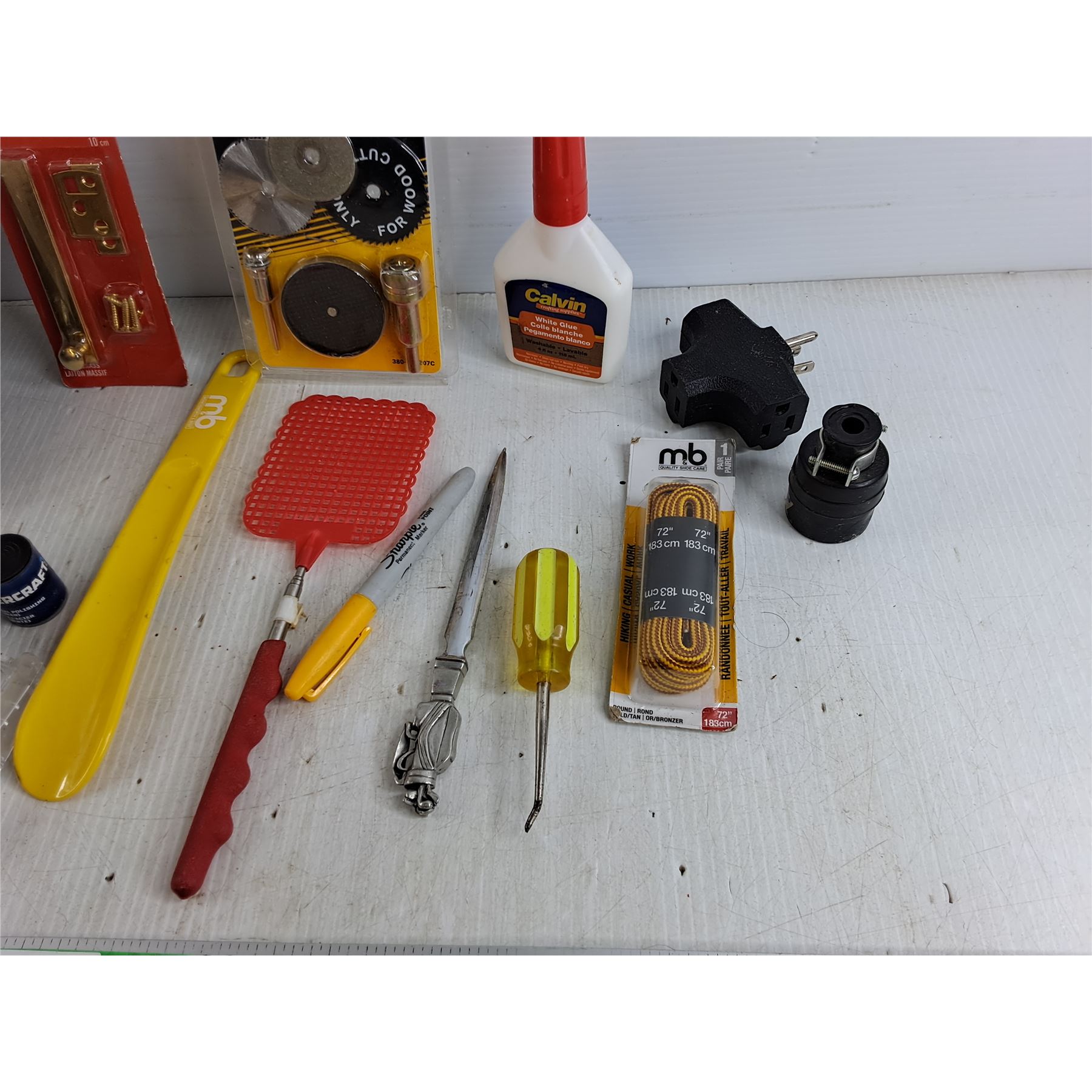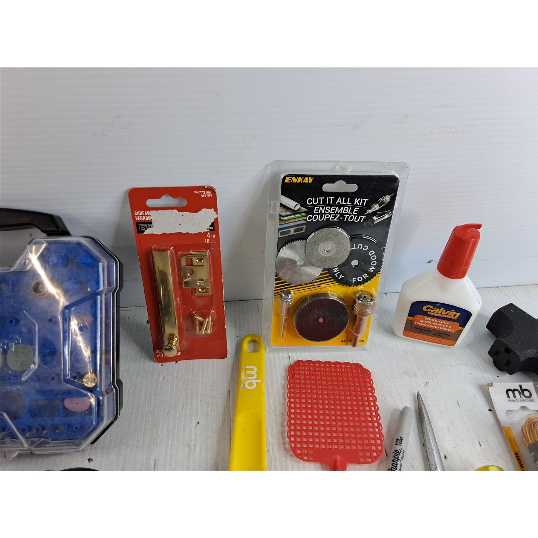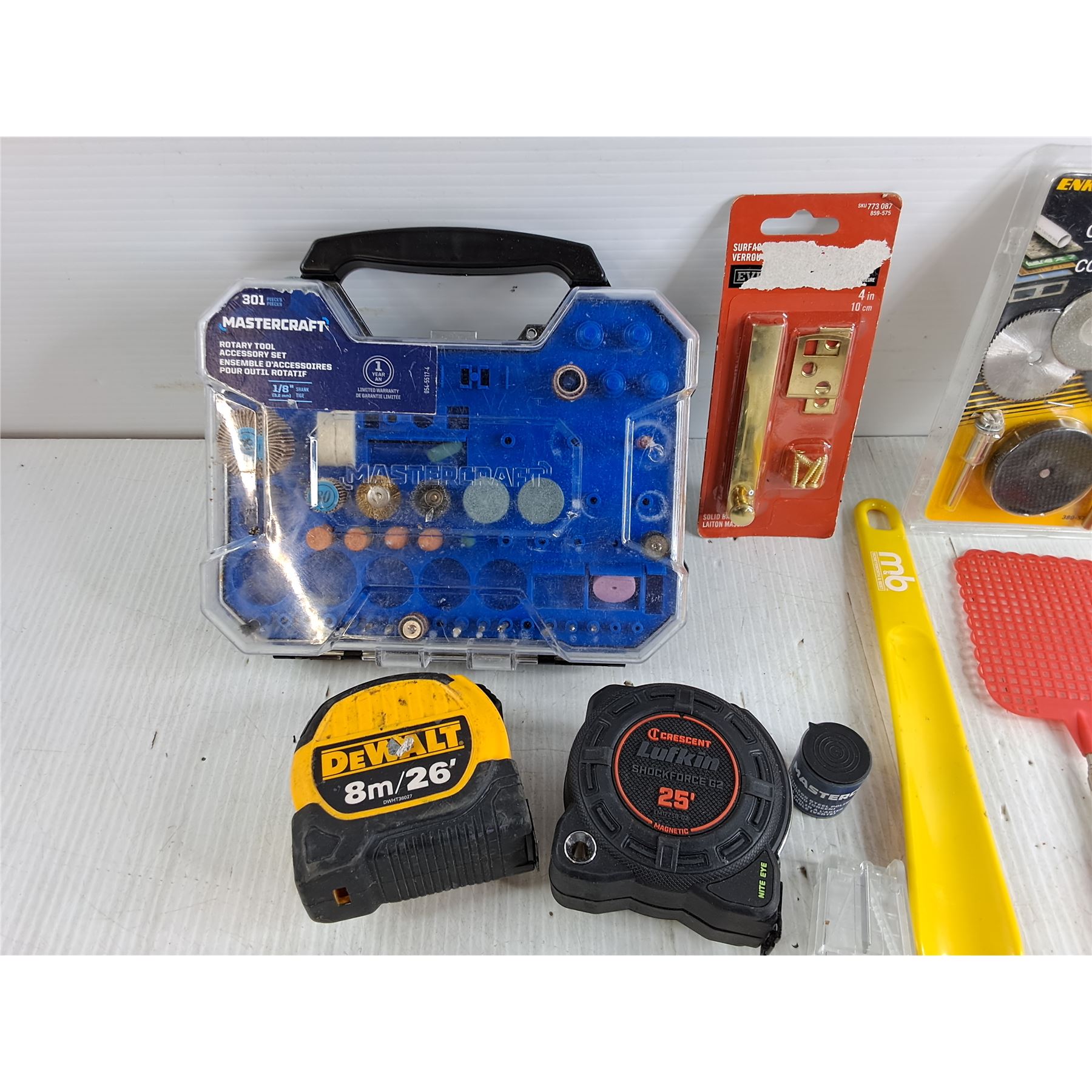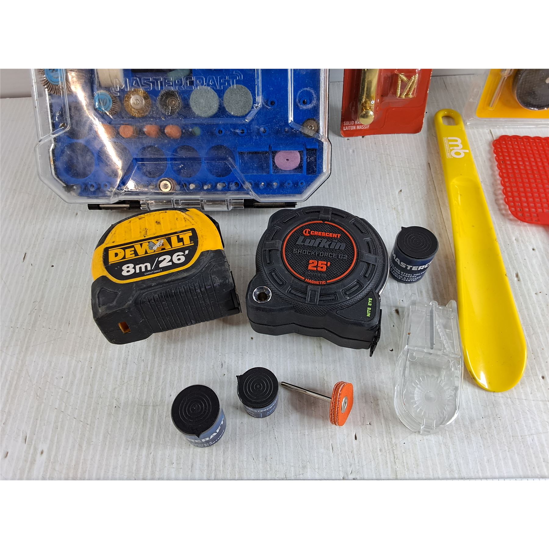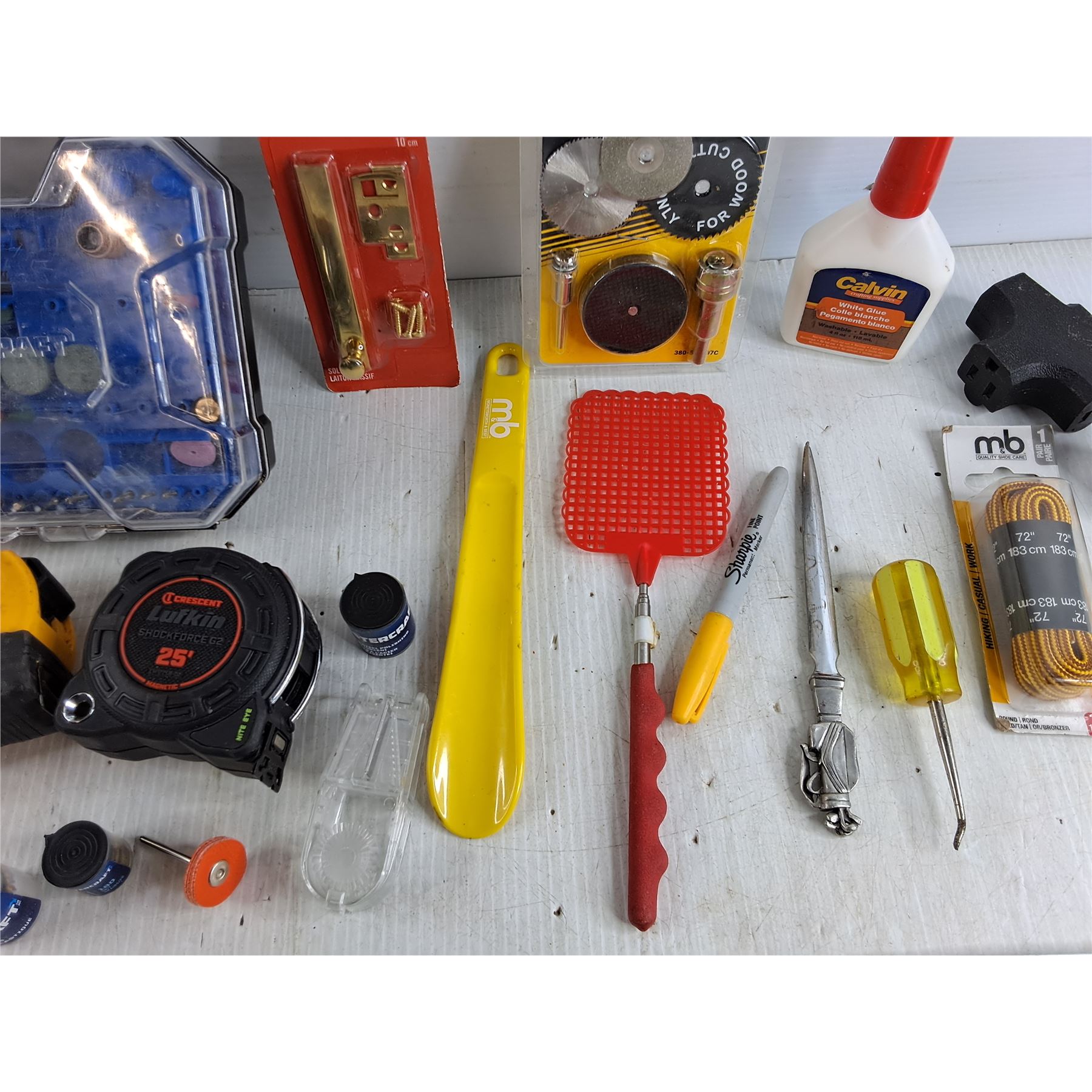 Mastercraft Rotary Tool Accessory Set, Measuring Tapes, Laces, Shoe Horn, Fly Swatter, White Glue