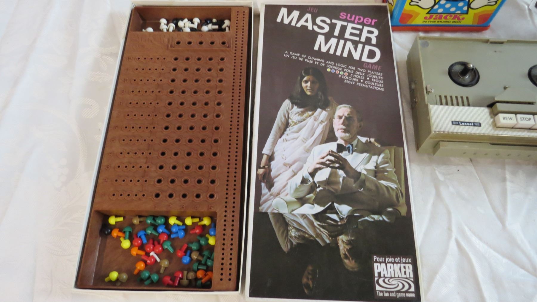 Mastermind Board Game + Jack in the box and tape recorder